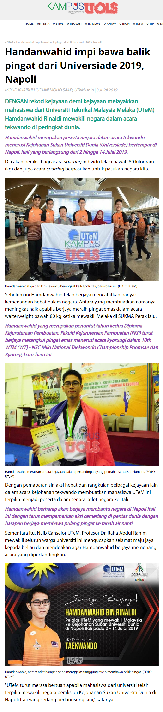Handanwahid impi bawa balik pingat dari Universiade 2019, Napoli