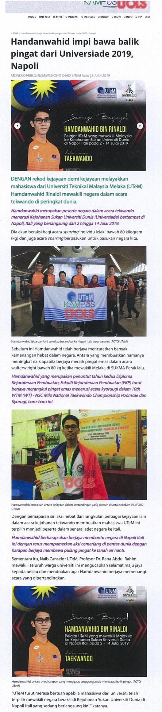 Handanwahid impi bawa balik pingat dari Universiti 2019, Napoli