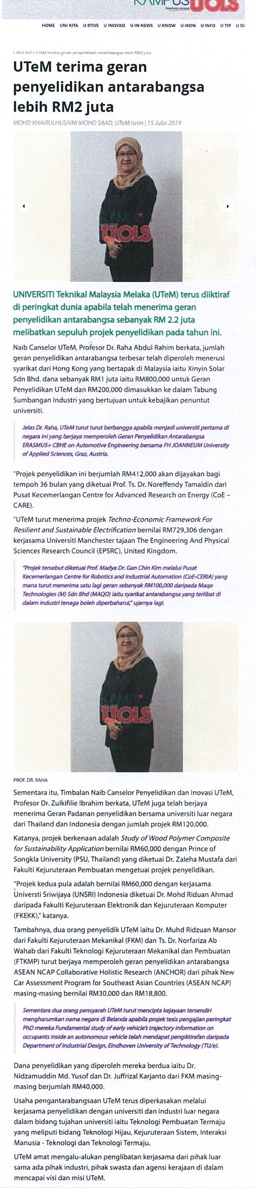 UTeM terima geran penyelidikan antarabangsa lebih RM2 juta