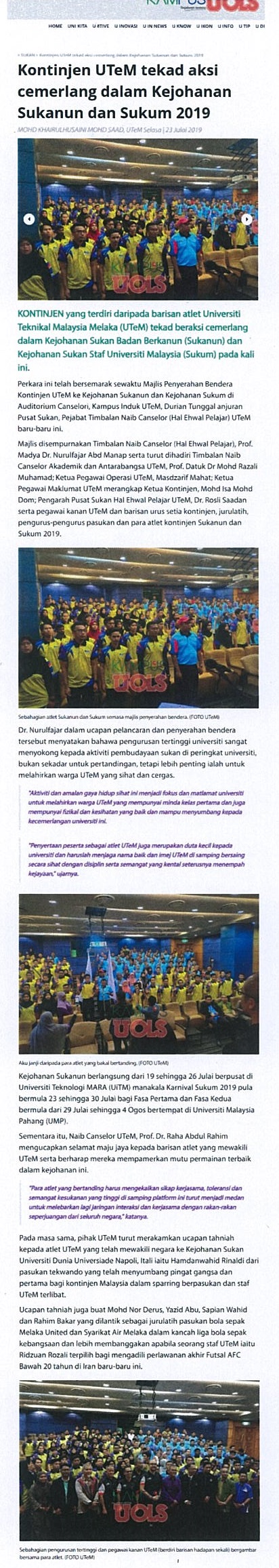Kontinjen UTeM tekad aksi cemerlang dalam kejohanan sukanun dan sukum 2019