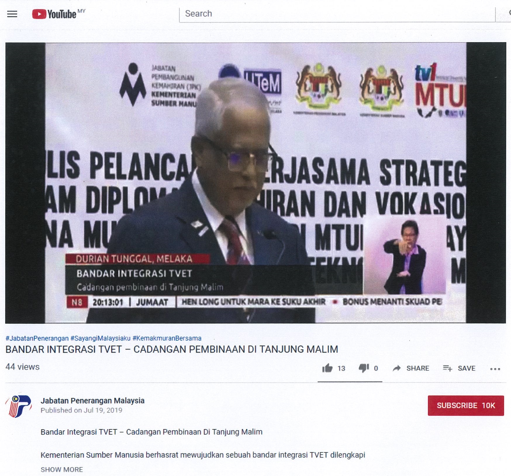 Bandar integrasi TVET - cadangan pembinaan di Tanjung Malim