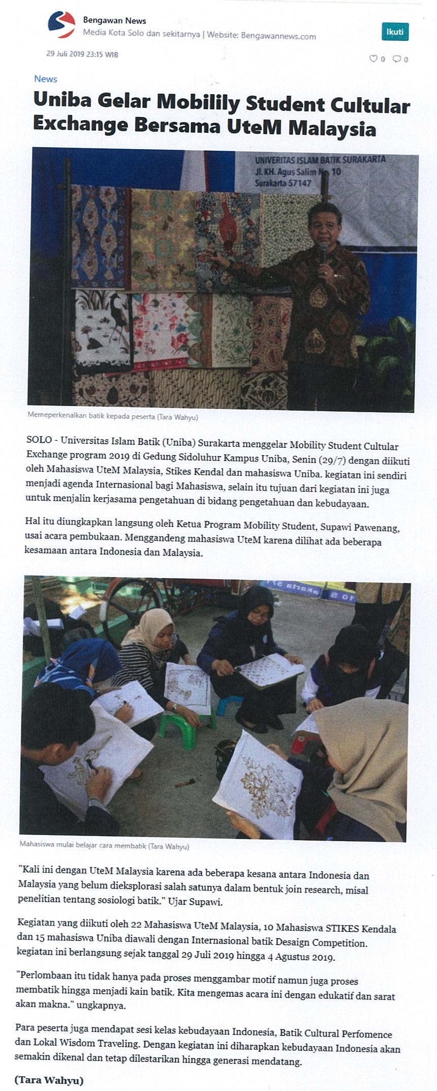 Uniba Gelar Mobility Student Xultural Exchange Bersama UTeM Malaysia