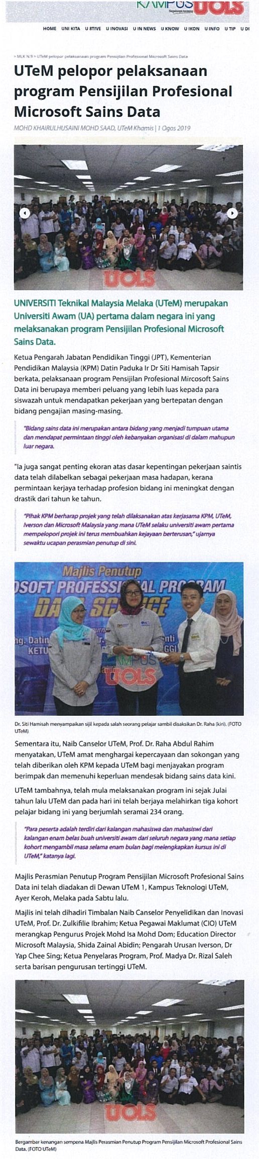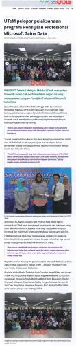 UTeM pelopor pelaksanaan program Pensijilan Profesional Microsoft Sains Data