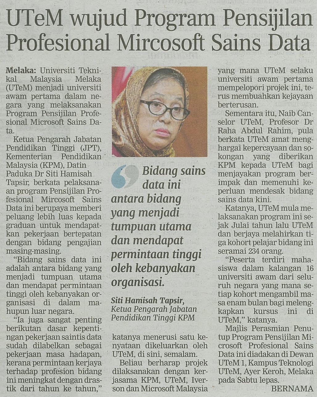 UTeM wujud Program Pensijilan Profesional Microsoft Sains Data