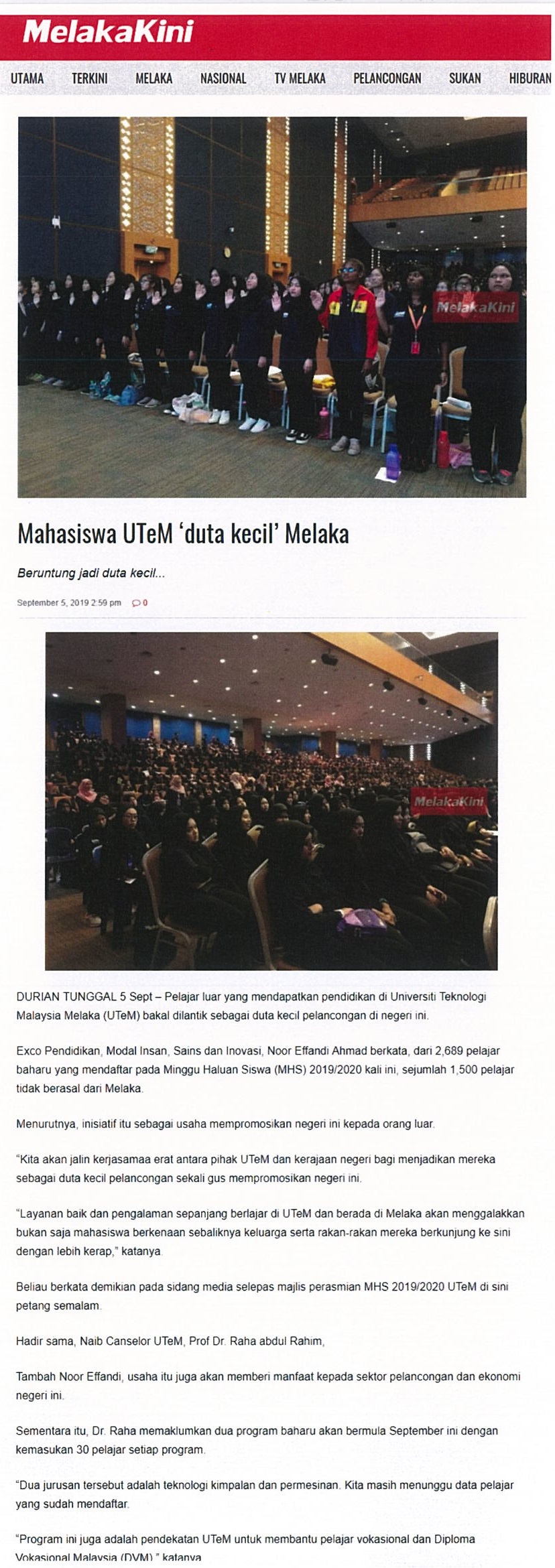 Mahasiswa UTeM 'Duta Kecil' Melaka