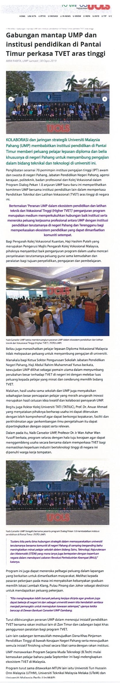 Gabungan mantap UMP dan institusi pendidikan di Pantai Timur perkasa TVET aras tinggi