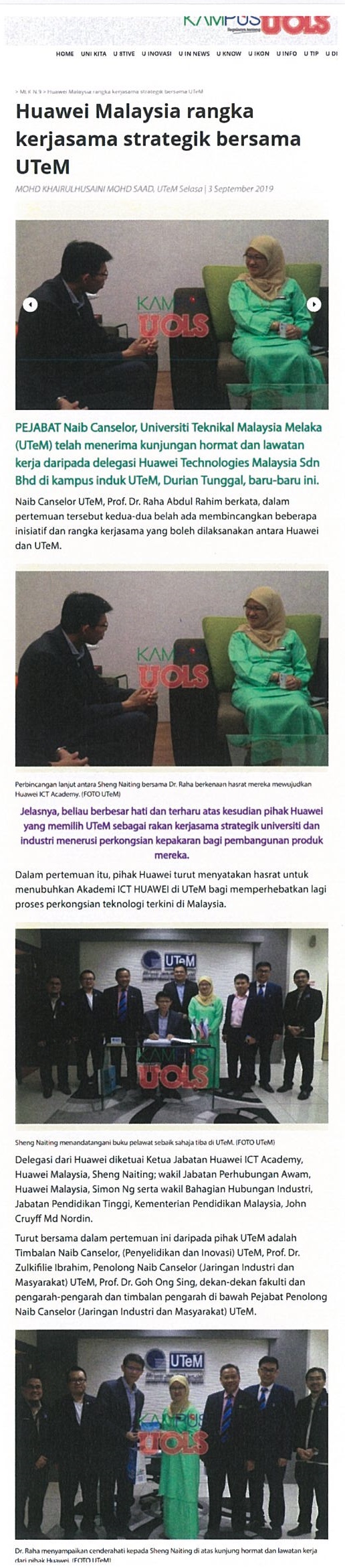 Huawei Malaysia rangka kerjasama strategik bersama UTeM