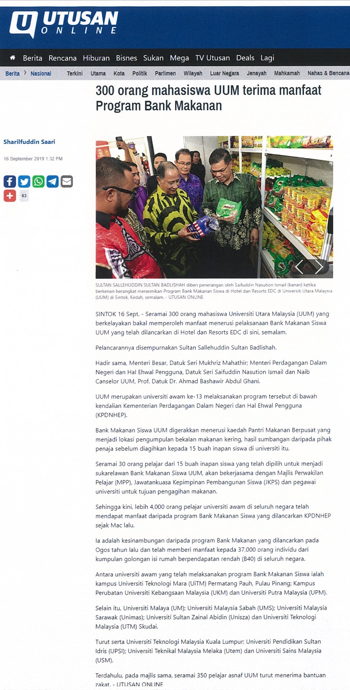 300 orang mahasiswa UUM terima manfaat Program Bank Makanan