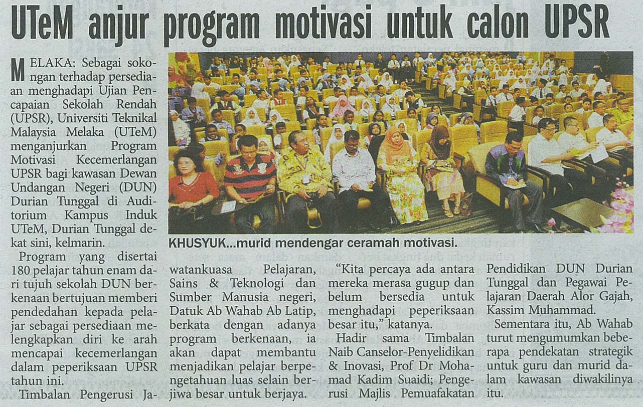 UTeM anjur program motivasi untuk calon UPSR