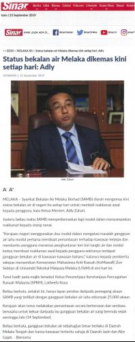 Status bekalan air Melaka dikemaskini setiap hari : Adly