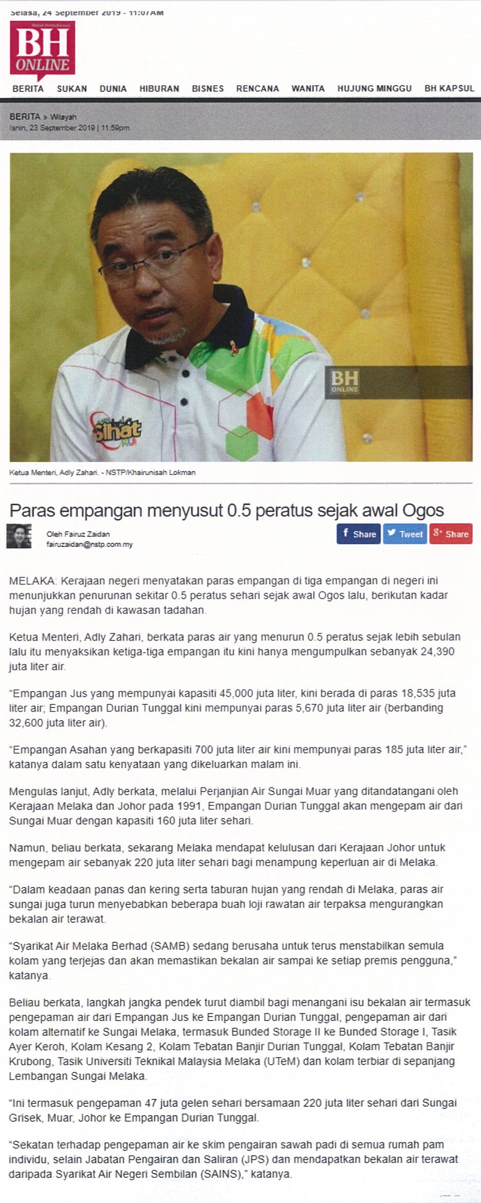 Paras empangan menyusut 0.5 peratus sejak awal Ogos