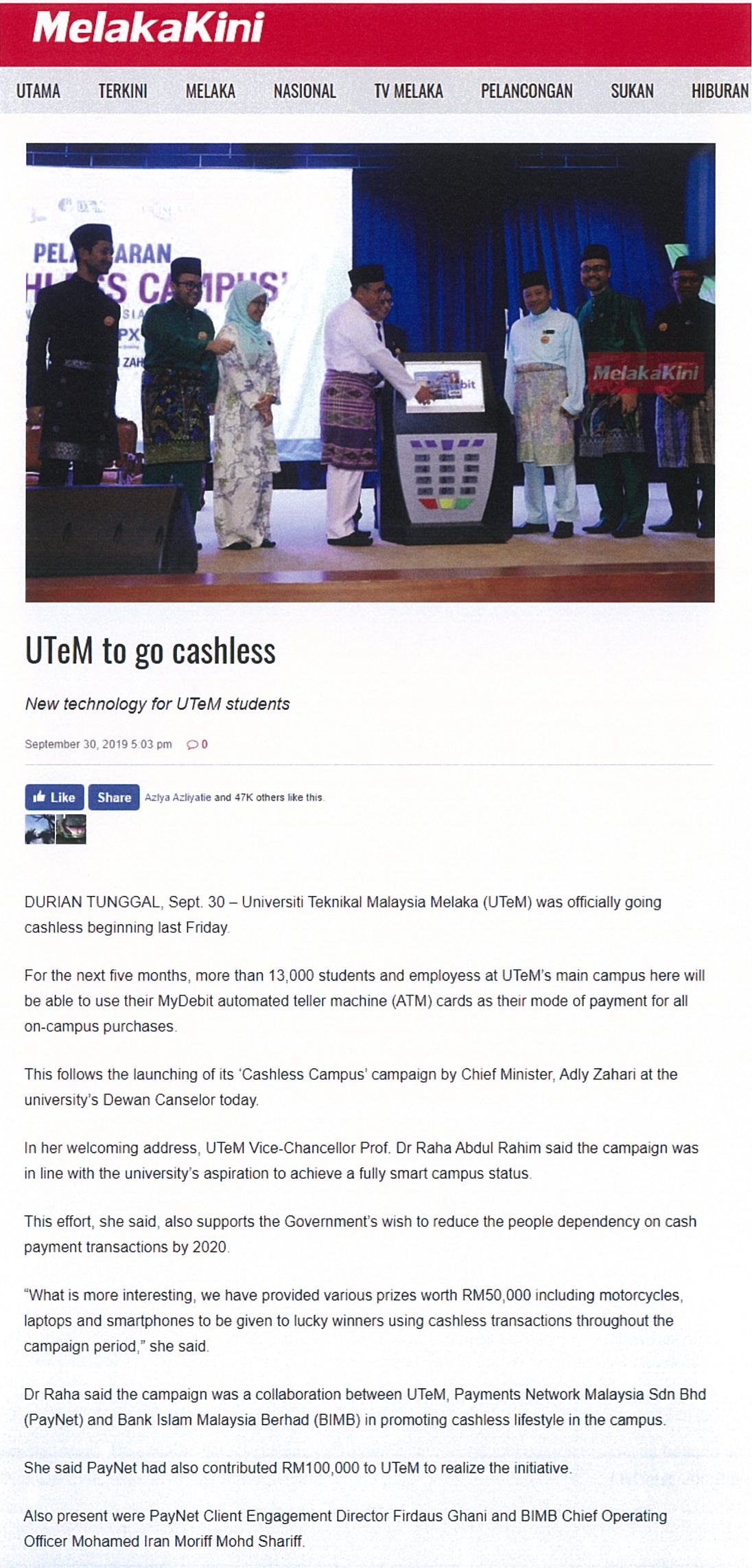 UTeM to go cashless