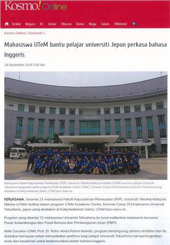 Mahasiswa UTeM bantu pelajar universiti Jepun perkasa bahasa Inggeris