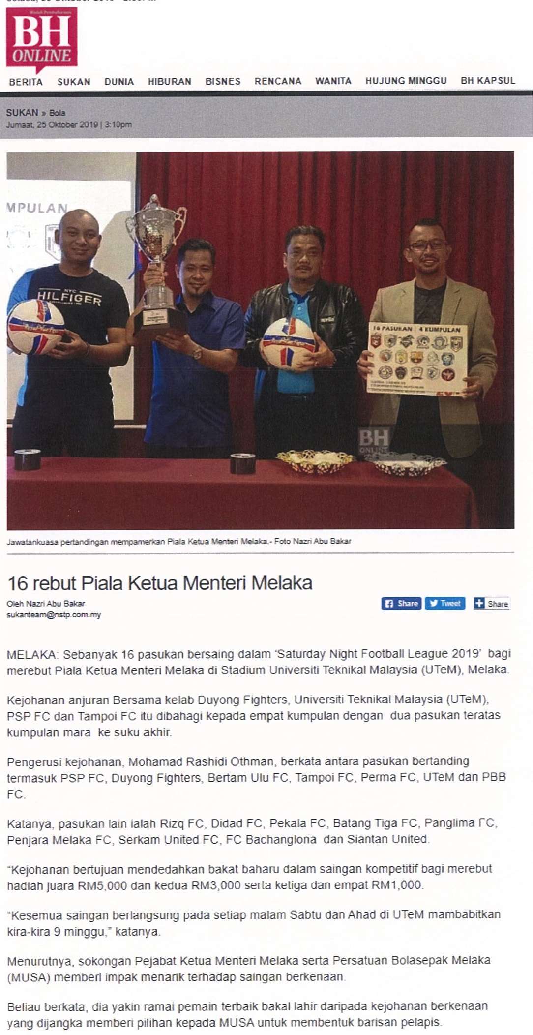 16 rebut Piala Ketua Menteri Melaka