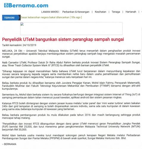 Penyelidik UTeM bangunkan sistem perangkap sampah sungai