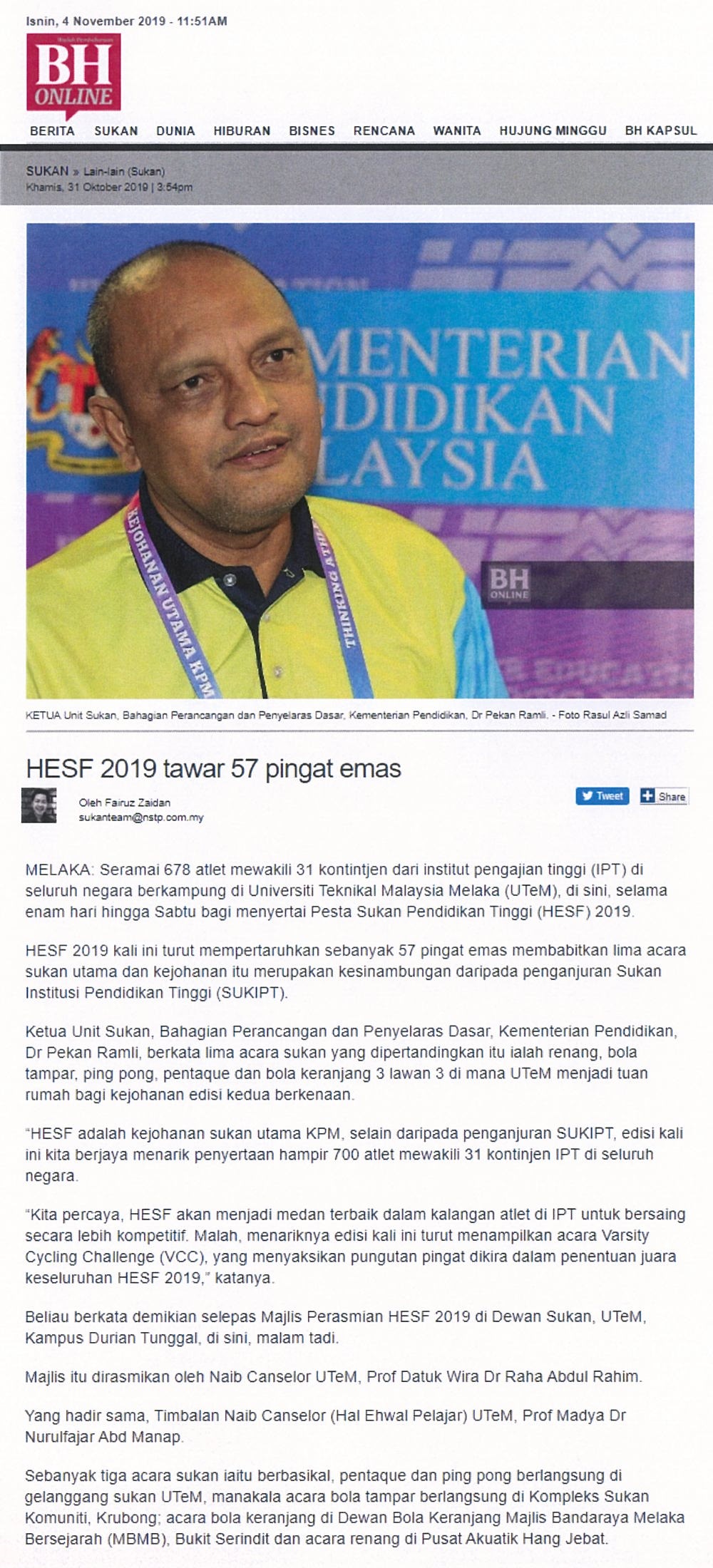 HESF 2019 tawar 57 pingat emas