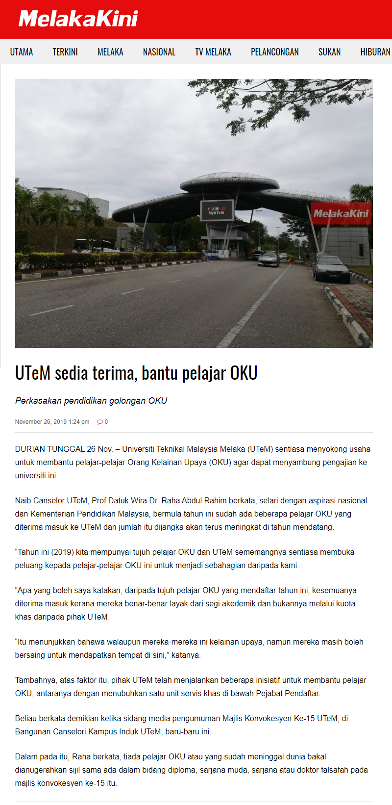 UTeM Sedia Terima, Bantu Pelajar OKU
