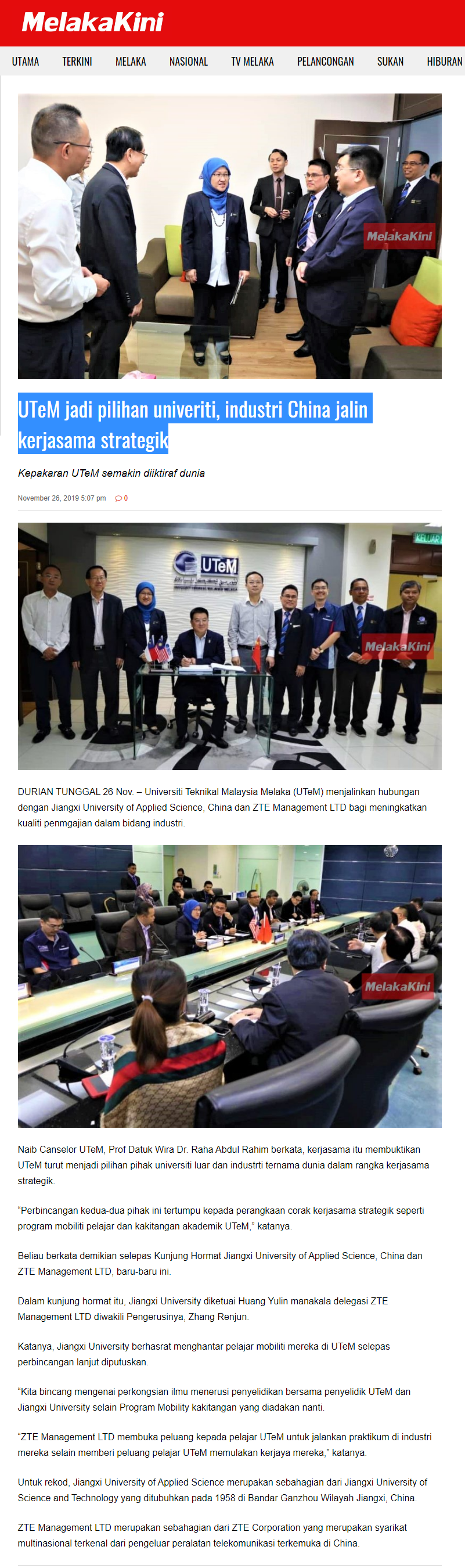 UTeM Jadi Pilihan Universiti, Industri China Jalin Kerjasama Strategik