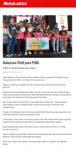 Mahasiswa UTeM juara PUBG