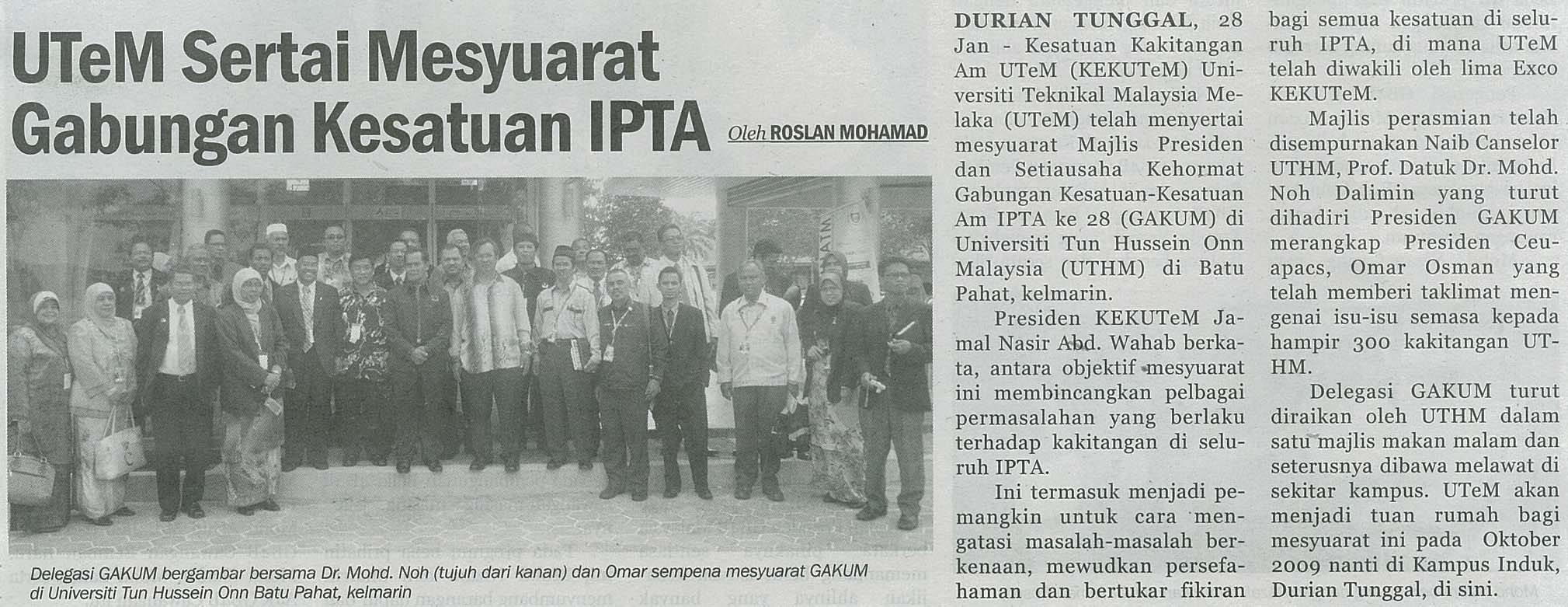 UTeM sertai mesyuarat gabungan kesatuan IPTA