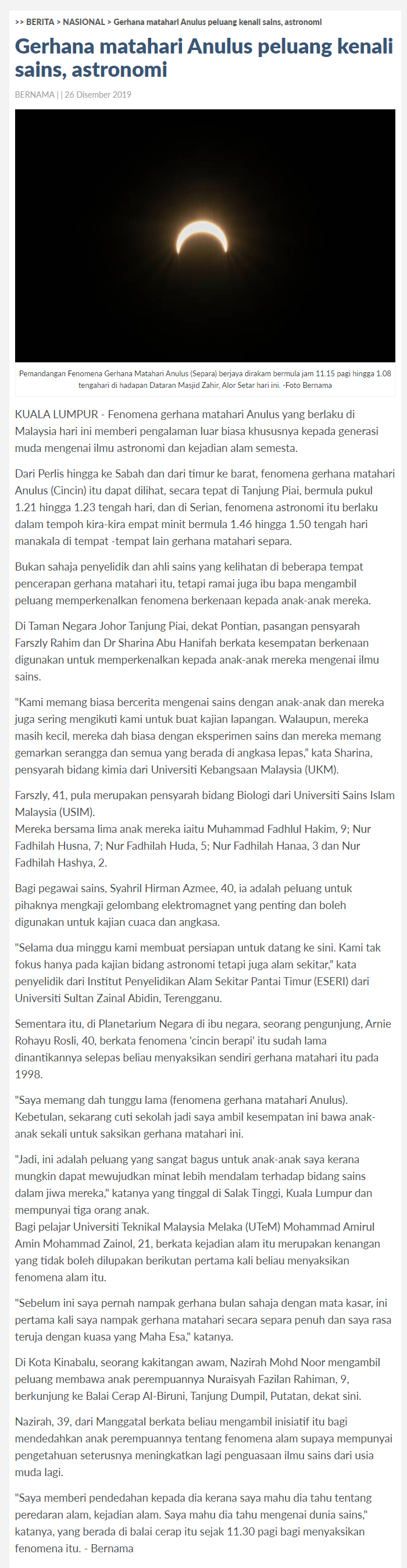 Gerhana matahari Anulus peluang kenali sains, astronomi