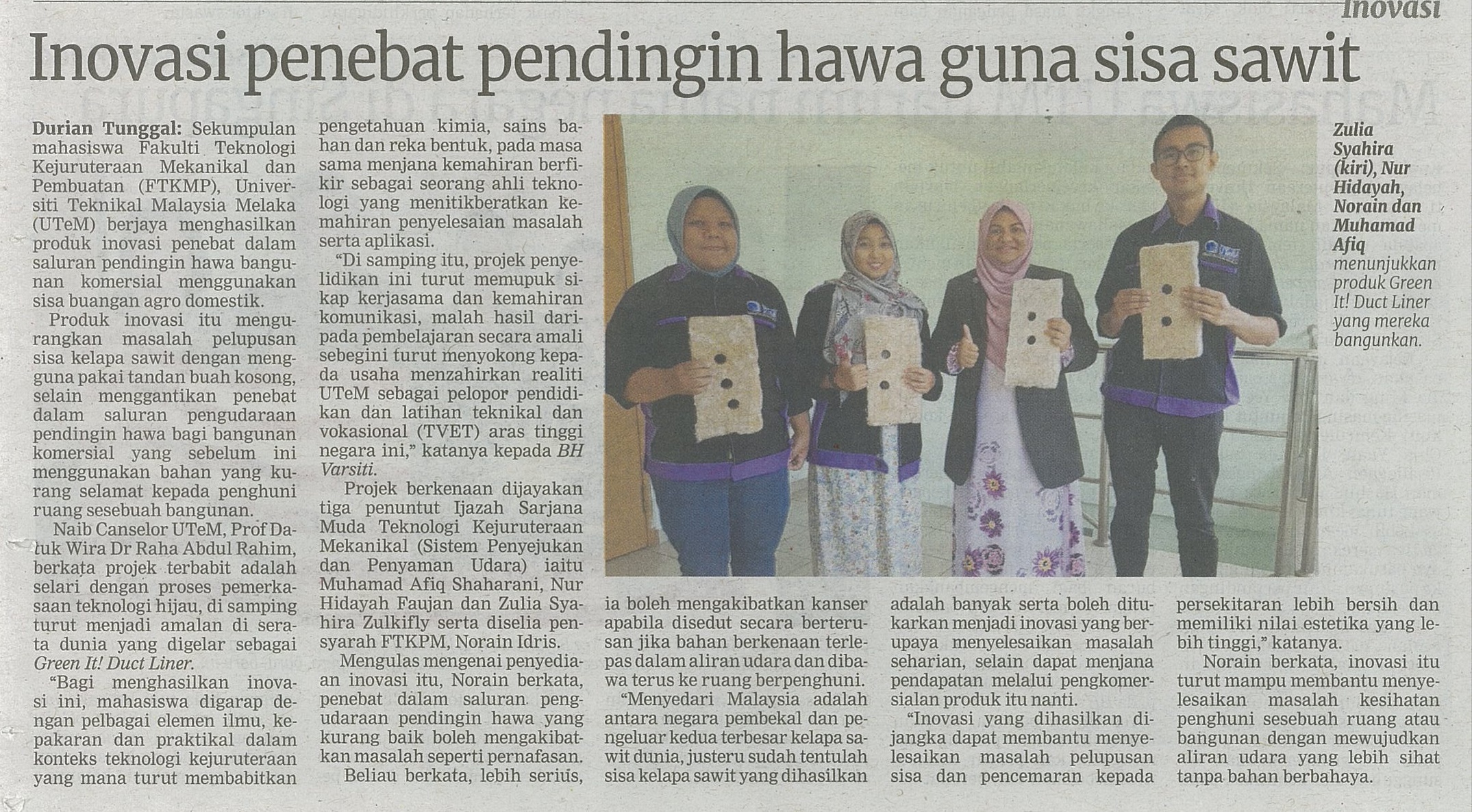 Inovasi Penebat Pendingin Hawa Guna Sisa Sawit