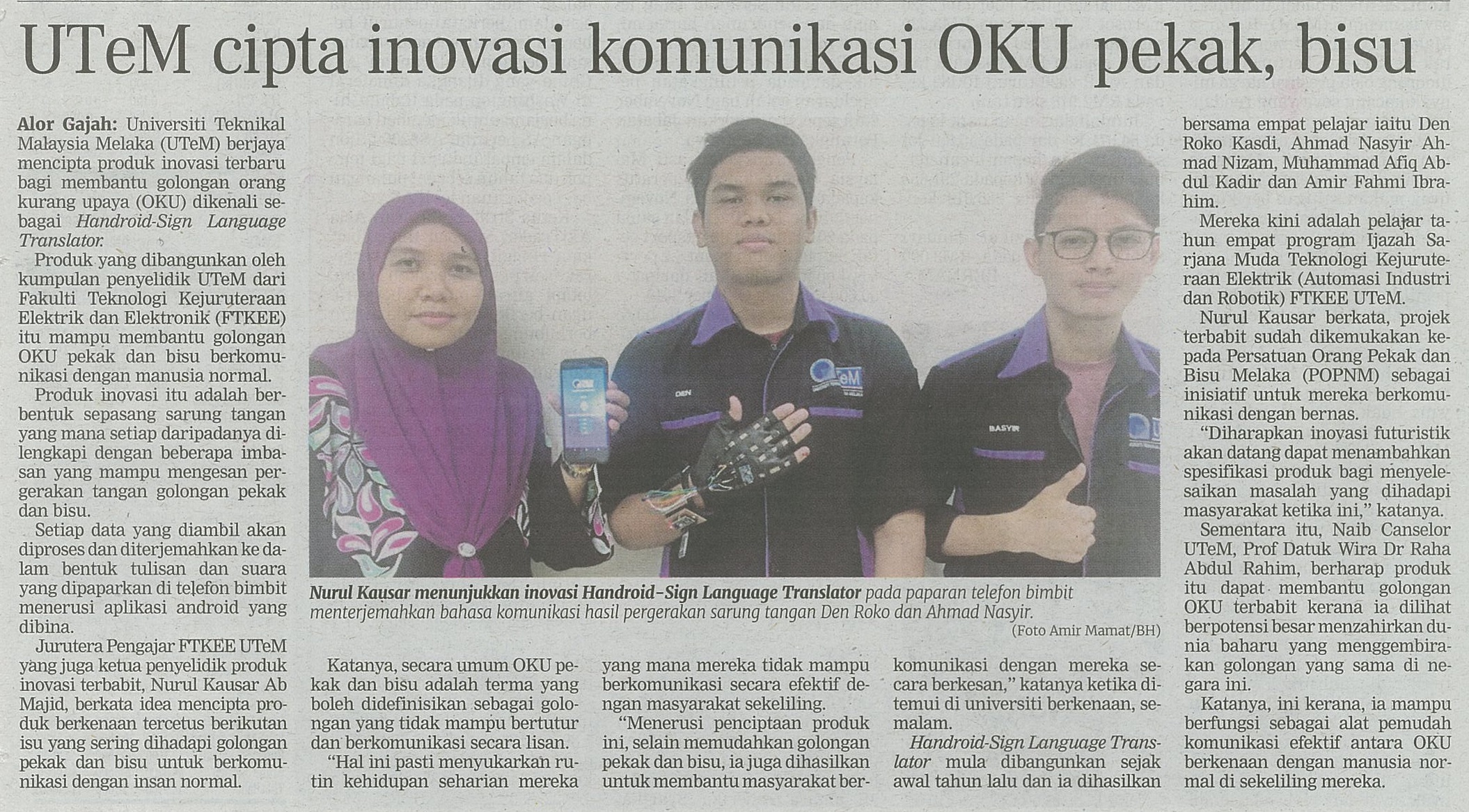 UTeM Cipta Inovasi Komunikasi OKU Pekak, Bisu (Berita Harian)