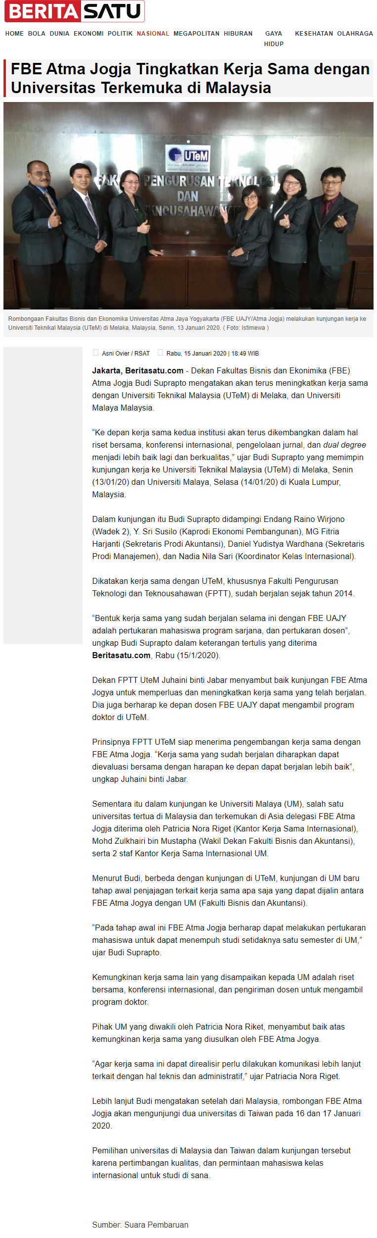 FBE Atma Jogja Tingkatkan Kerja Sama dengan Universitas Terkemuka di Malaysia