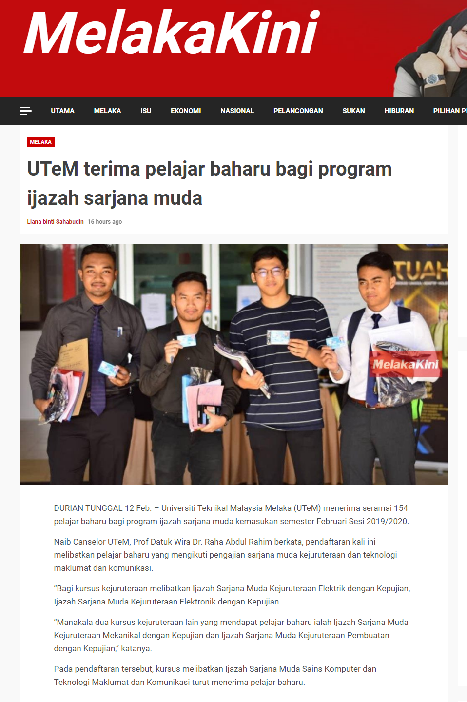 UTeM terima pelajar baharu bagi program ijazah sarjana muda