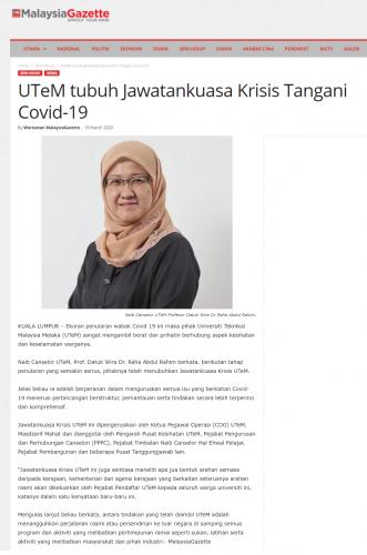 UTeM tubuh Jawatankuasa Krisis Tangani Covid-19