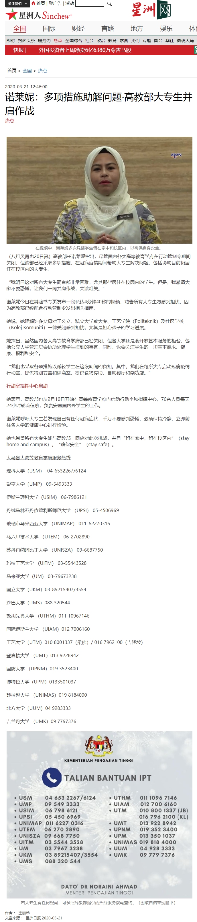 诺莱妮:多项措施助解问题‧高教部大专生并肩作战
