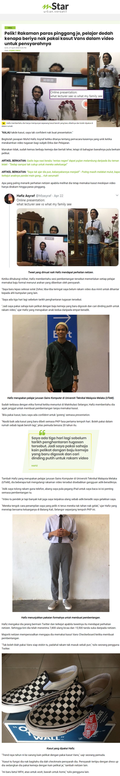 Pelik! Rakaman paras pinggang je, pelajar dedah kenapa beriya nak pakai kasut Vans dalam video untuk pensyarahnya