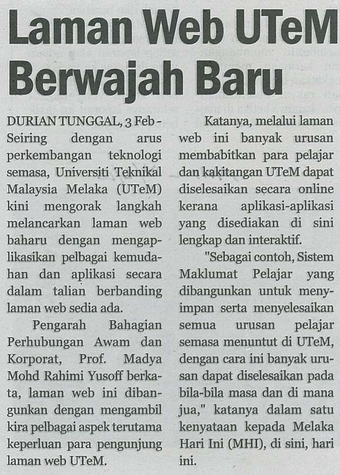 Laman web UTeM berwajah baru