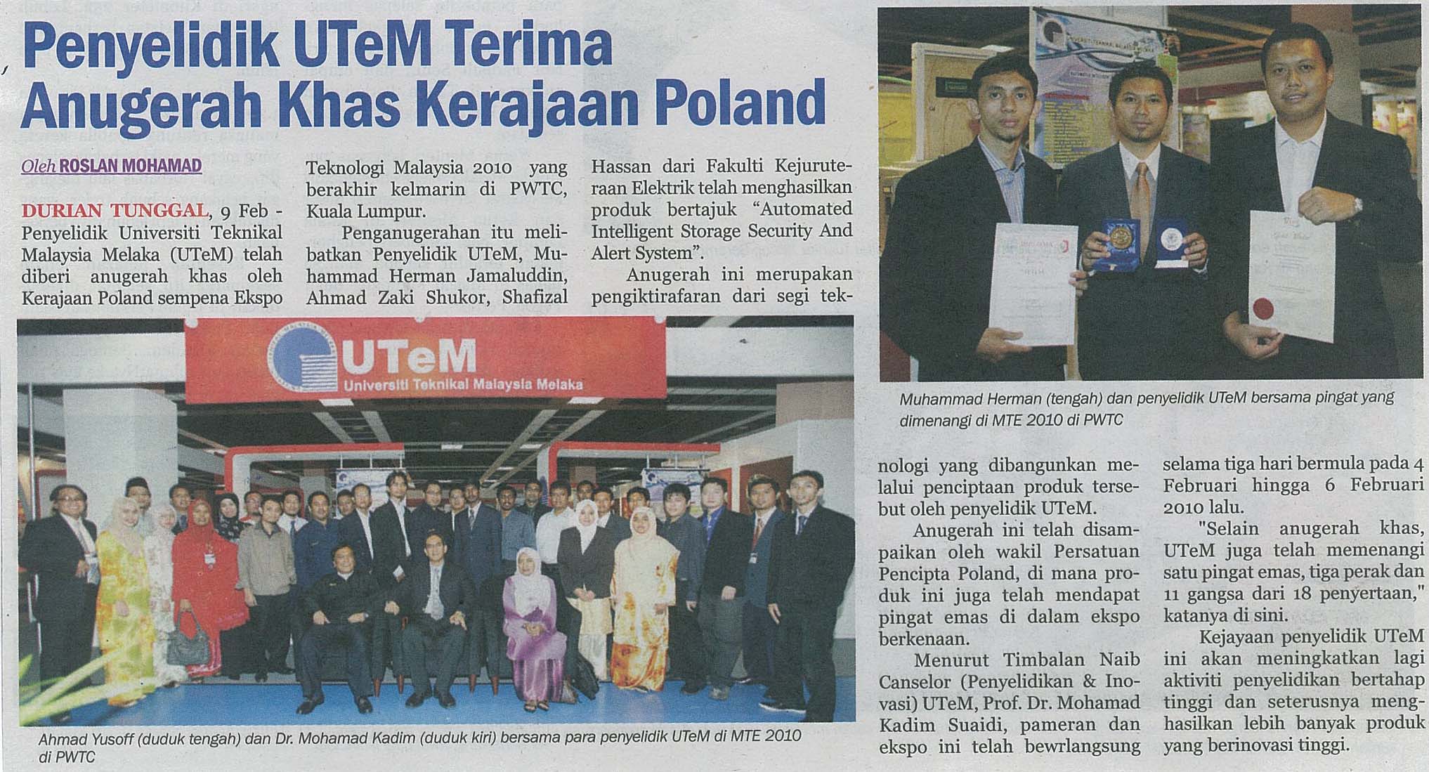 Penyelidik UTeM terima Anugerah Khas Kerajaan Poland