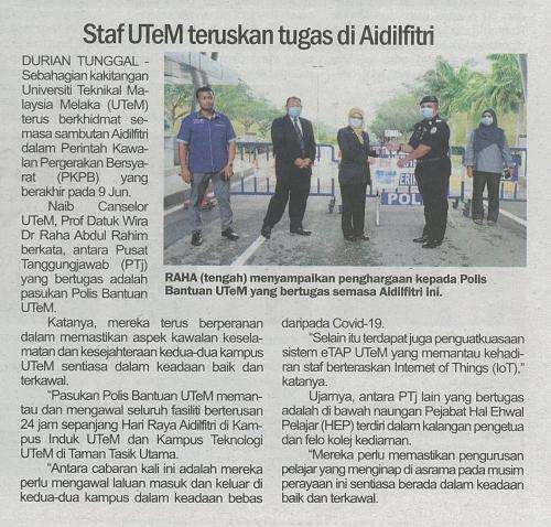 Staf UTeM teruskan tugas di Aidilfitri