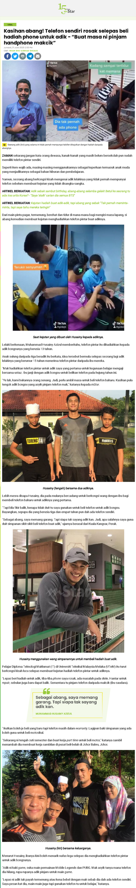 Kasihan abang! Telefon sendiri rosak selepas beli hadiah phone untuk adik - “Buat masa ni pinjam handphone makcik”
