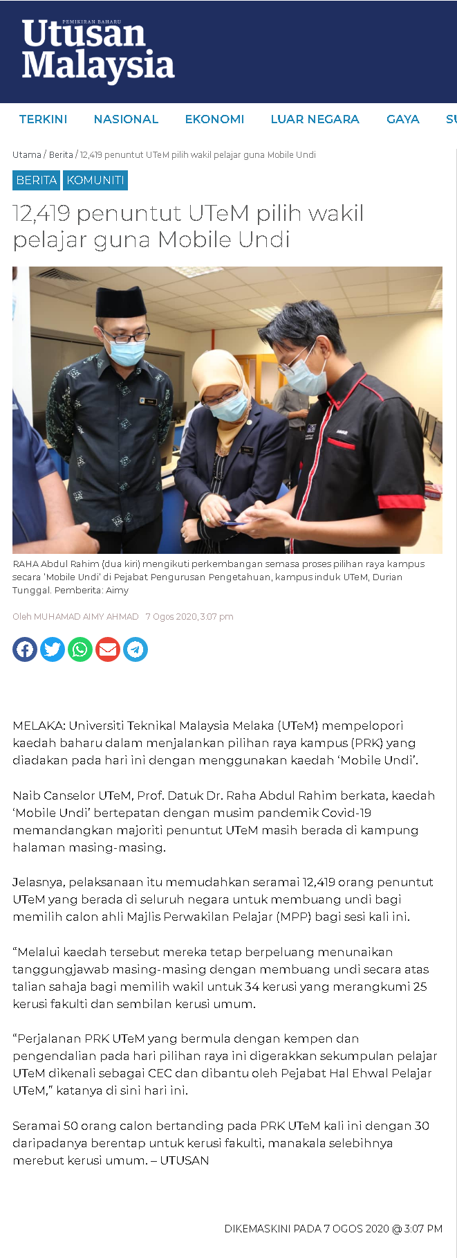 12,419 penuntut UTeM pilih wakil pelajar guna Mobile Undi