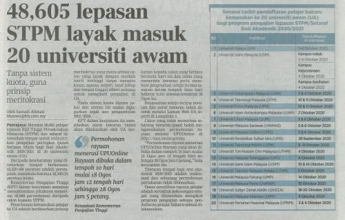 48,605 Lepasan STPM Layak Masuk 20 Universiti Awam