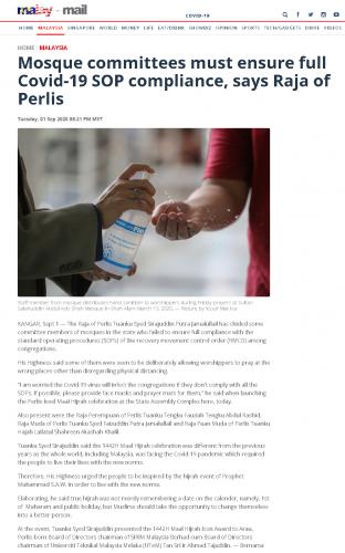Mosque committees must ensure full Covid-19 SOP compliance, says Raja of Perlis
