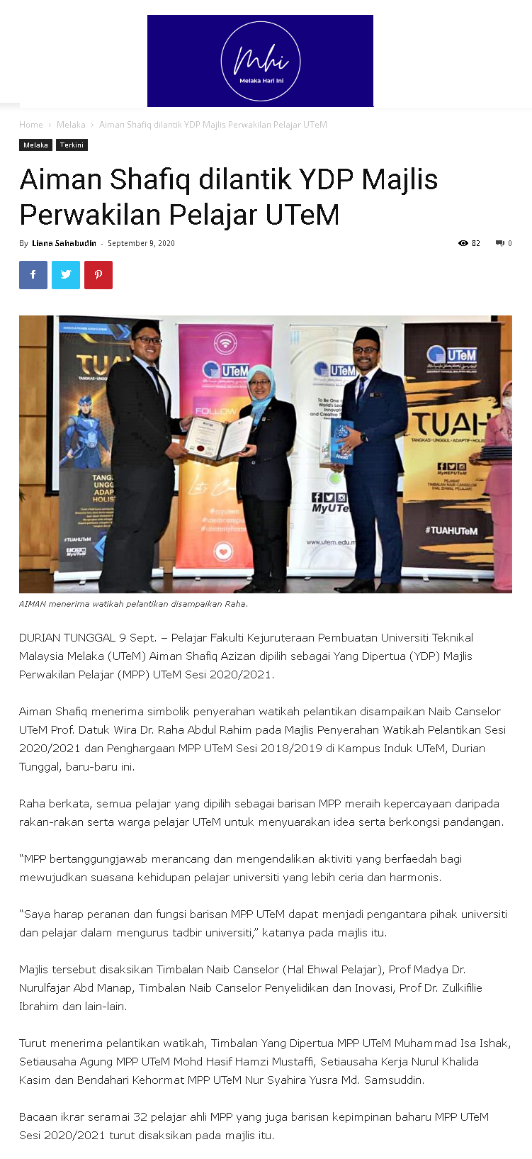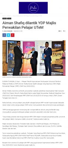 Aiman Shafiq dilantik YDP Majlis Perwakilan Pelajar UTeM