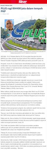 PLUS rugi RM400 juta dalam tempoh PKP