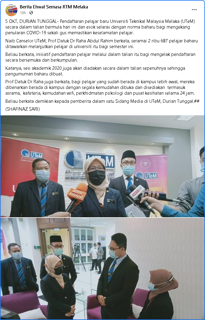 Pendaftaran pelajar baru Universiti Teknikal Malaysia Melaka secara dalam talian