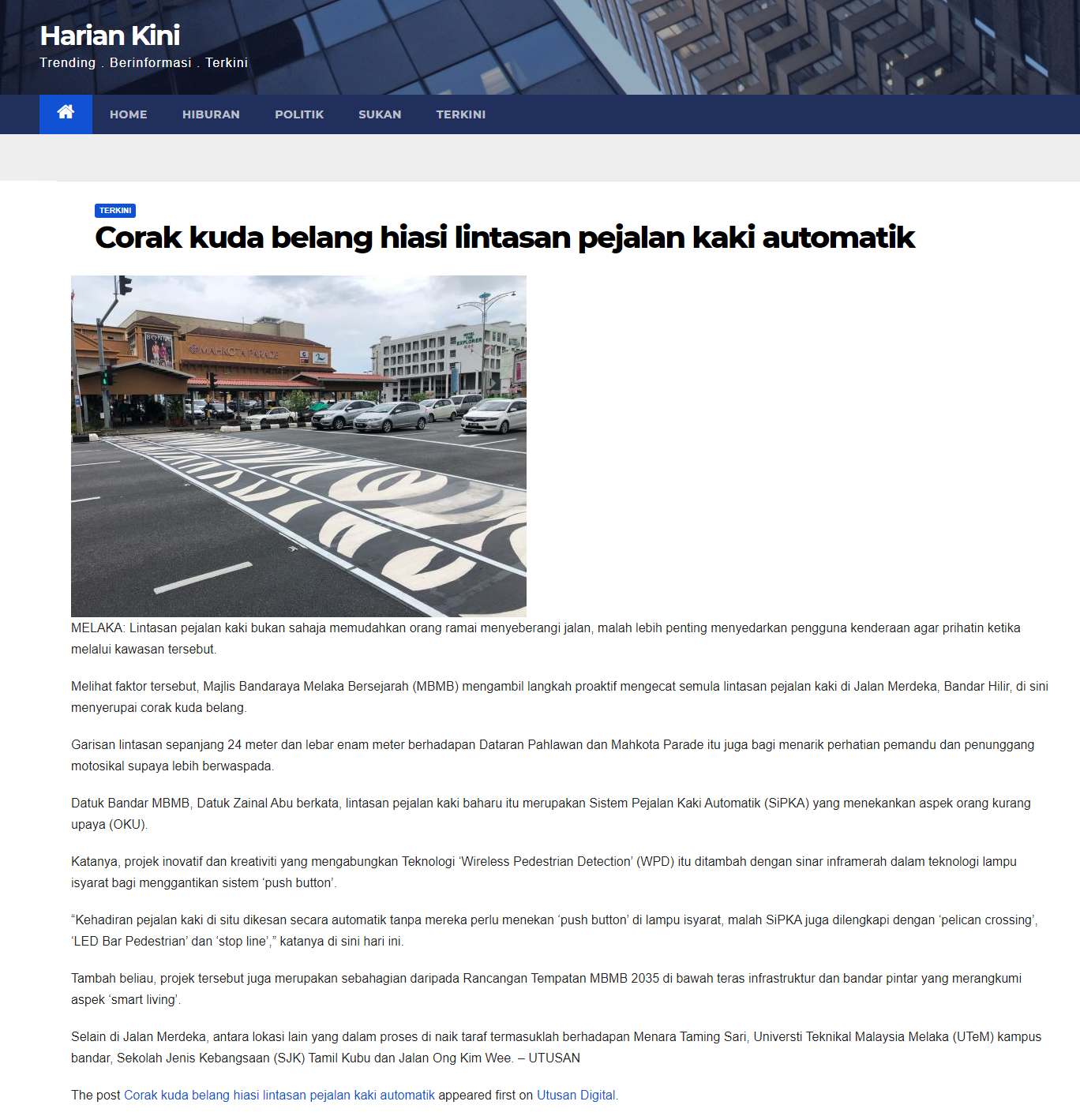 Corak kuda belang hiasi lintasan pejalan kaki automatik