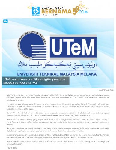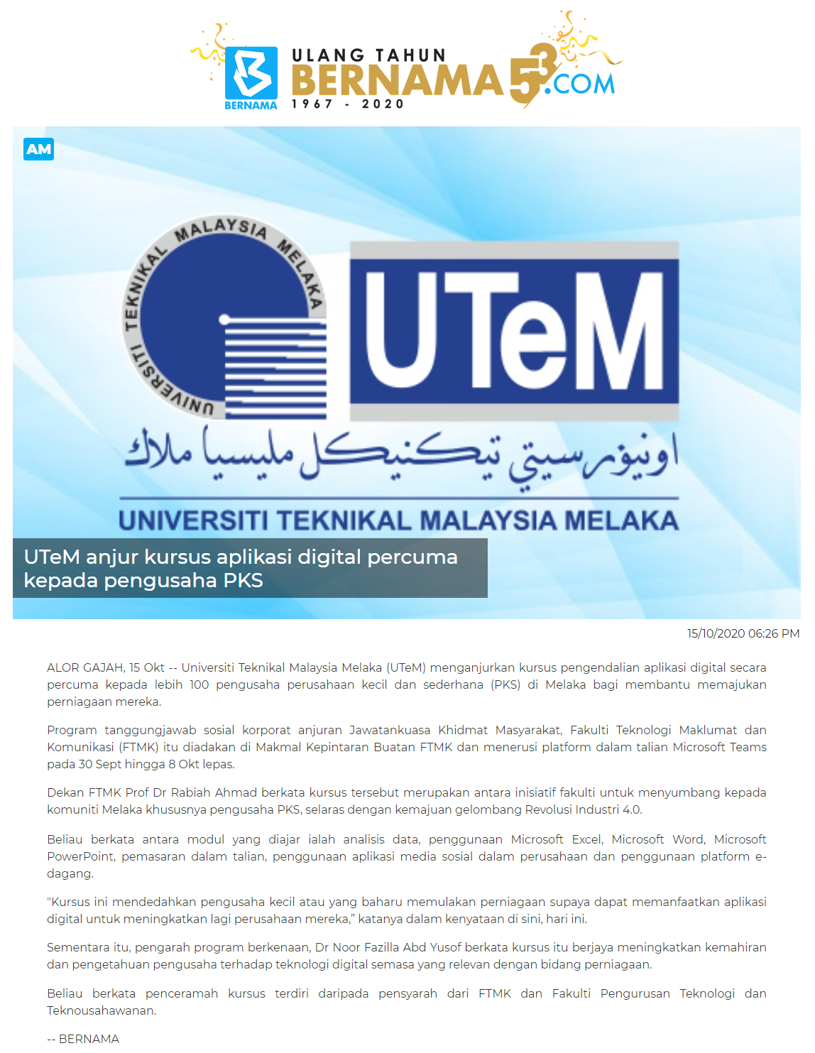UTeM anjur kursus aplikasi digital percuma kepada pengusaha PKS