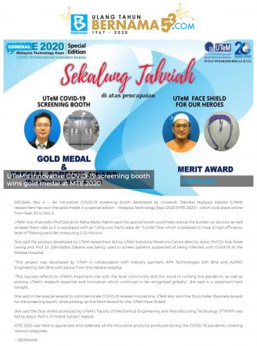 UTeM's innovative COVID-19 screening booth wins gold medal at MTE 2020