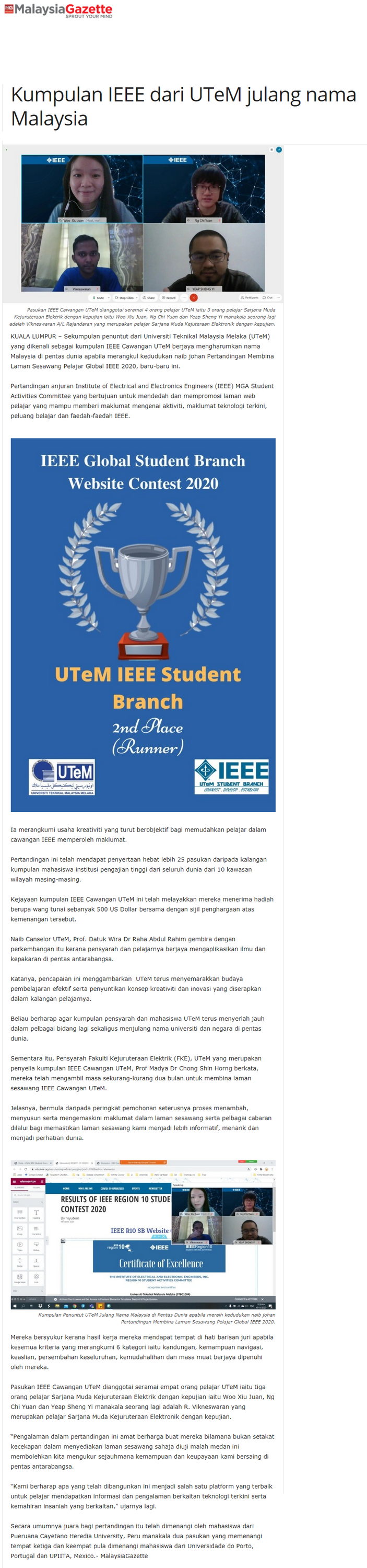 Kumpulan IEEE dari UTeM julang nama Malaysia (Malaysia Gazette)