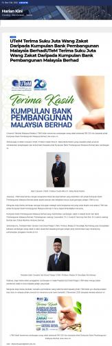 UTeM Terima Suku Juta Wang Zakat Daripada Kumpulan Bank Pembangunan Malaysia Berhad