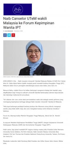 1. Naib Canselor UTeM wakili Malaysia ke Forum Kepimpinan Wanita IPT
