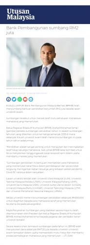 Bank Pembangunan sumbang RM2 juta (Utusan Malaysia)