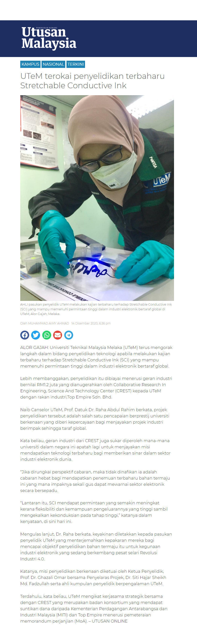 UTeM terokai penyelidikan terbaharu Stretchable Conductive Ink